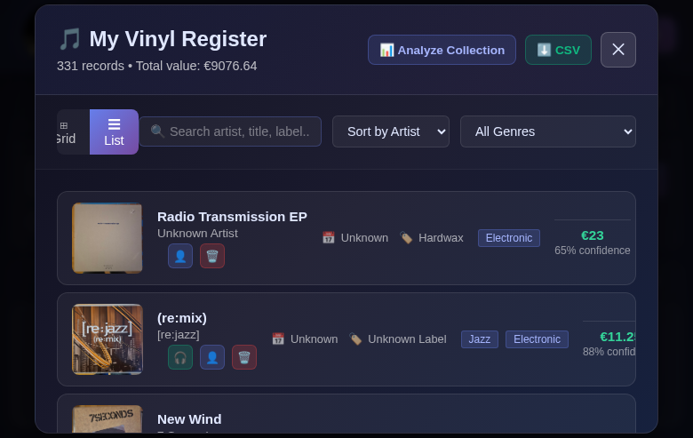 Switch your Vinyl Register to ☰ List mode. Every record row now shows up to three action buttons aligned to the right: